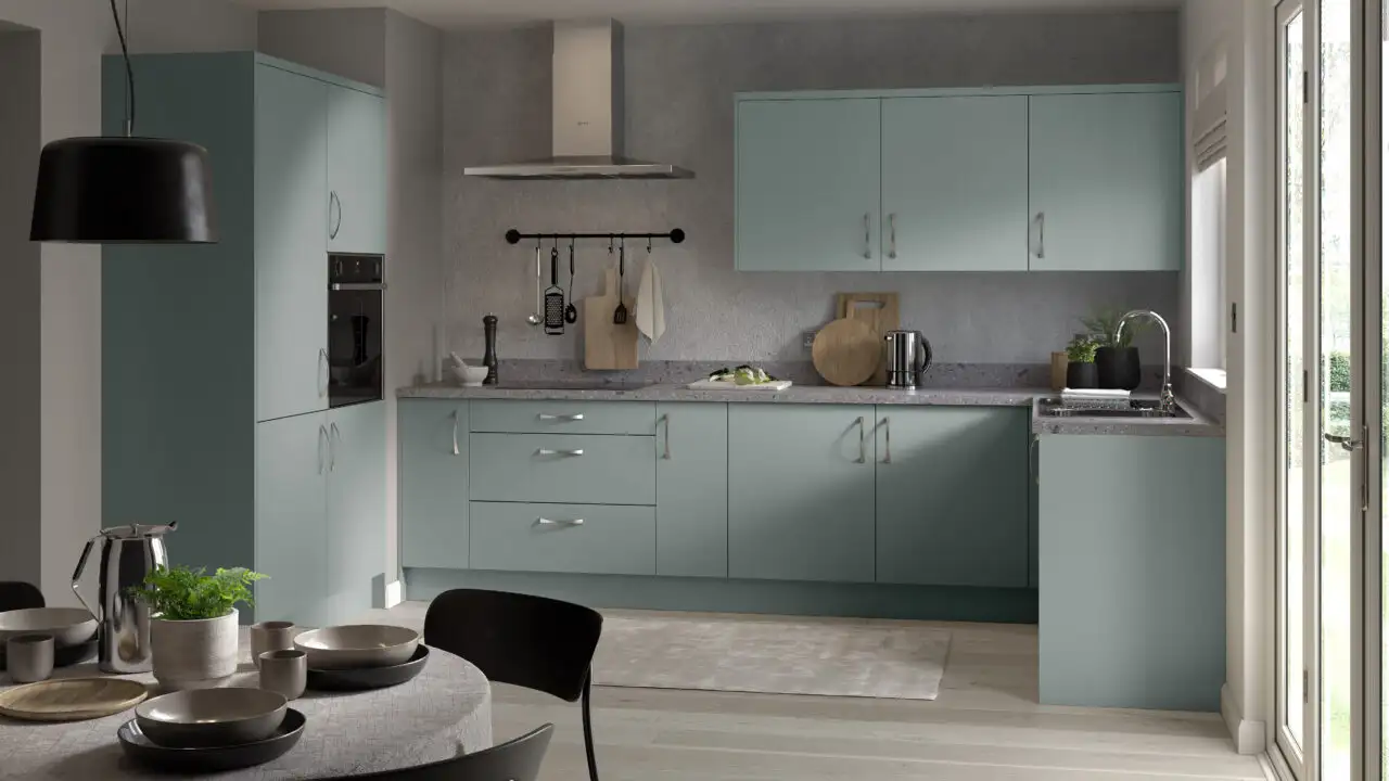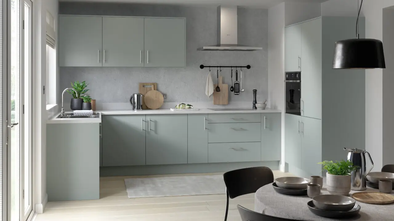 The Slab Kitchen Range features high-quality 18mm lacquered doors built on a durable chipboard core, finished with a premium super matt coating that provides a soft-touch feel and a sleek modern look. Each colour option is supplied with matching edging and colour-matched reverse panels, creating a consistent and refined finish throughout the kitchen.
